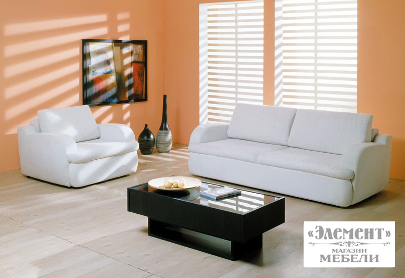 Мягкое кресло-кровать «Мустанг», вторая часть набора – это более личное пространство. Эстетичность и простота, присущая дивану, в полной мере свойственна и креслу-кровати. Оно и само по себе, стоящее отдельно, выглядит как небольшой диванчик. Достаточно внушительных размеров, кресло тем не менее не кажется тяжеловесным, благодаря легкости и плавности форм, сбалансированного соотношения нижней части и верхней подушки, удачному наклону спинки, у которого приютилась подушка и безупречной линии подлокотников. Раскладывается мягкое кресло-кровать с помощью механизма трансформации «выкатной».