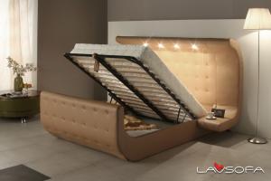 Мягкая интерьерная кровать «Азалия-3» как нельзя более демонстрирует вдумчивую и тщательную работу дизайнеров по созданию мягкой мебели, отвечающей самым современным тенденциям моды. Мягкая интерьерная кровать, благодаря своей сдержанной и функциональной форме идеально впишется в любой интерьер. Плавные формы изогнутого ложа, переходящие в козырек над изголовьем гармонично сочетаются со сдержанной гаммой обивки. Светильники, встроенные в козырек, позволяют владельцу этой мягкой интерьерной кровати читать вечером любимые книги, не заботясь о дополнительном освещении. В кровати «Азалия-3» установлена металлическая рама «Конго-лифт» с ортопедическими латами и механизмом пневмоподъема, что обеспечивает максимальное удобство и здоровый, комфортный сон.