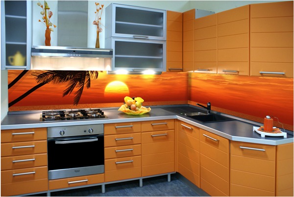 Пленка устойчива ко всем видам механических повреждений, так что на такую столешницу можно и чайник с плиты поставить, и что-то уронить, и нечаянно задеть кухонным ножом – ничего с покрытием не случится. Геометрия предметов кухни неотразима и великолепна. Поэтому в таком стиле редко делают выделяющиеся стены или необычный орнамент на полу, все, что окружает саму кухонную мебель достаточно нейтральных цветов и оттенков, включая кухонный фартук.