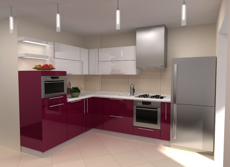 Это современный кухонный гарнитур в стиле модерн, которая прекрасно подойдет для установки на маленькой кухне. Кухня не только красива внешне, но и очень практична и функционально, полезное пространство используется с максимальной отдачей. Материал гарнитура МДФ, существует множество доступных решений по цвету, материалам и комплектации. Данная кухня подходит для современных людей, живущие в стиле Хай Тек. Гармоничное сочетание черт и форм гарнитура создают современный дизайн и уют кухни.